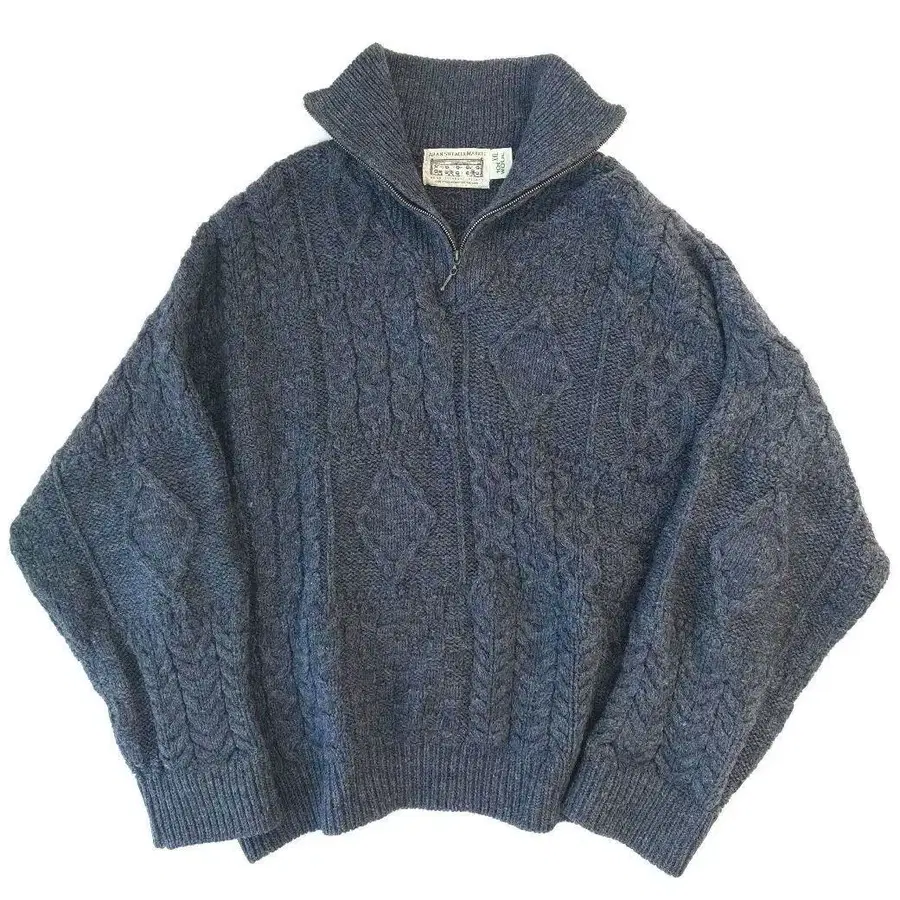 ARAN SWEATER MARKET 아란 니트 하프 지퍼 피셔맨 스웨터 빈티지 그레이 XXL
