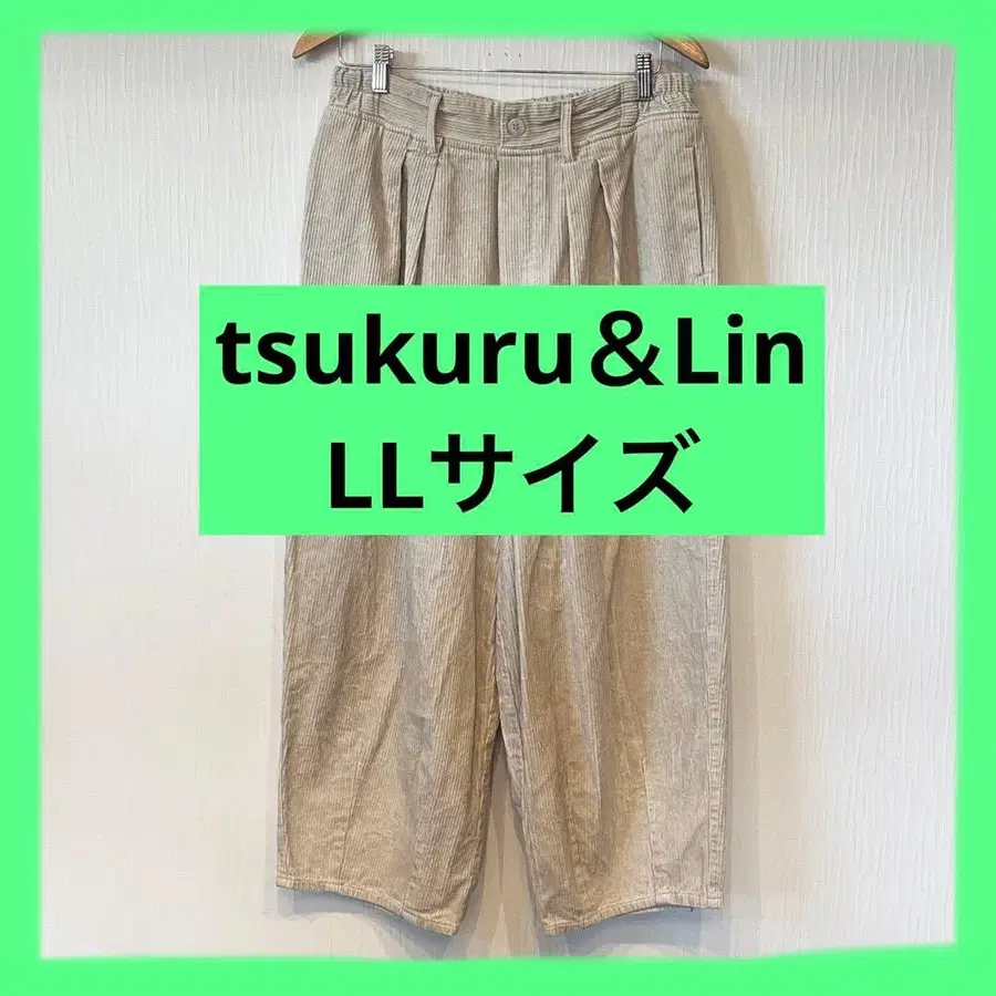 여성용 코듀로이 아이보리 플리츠 와이드 팬츠 LL 사이즈