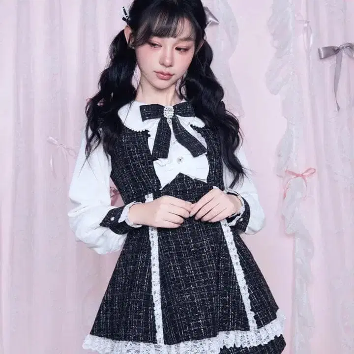 nogenki 레이스업 트위드 셋업