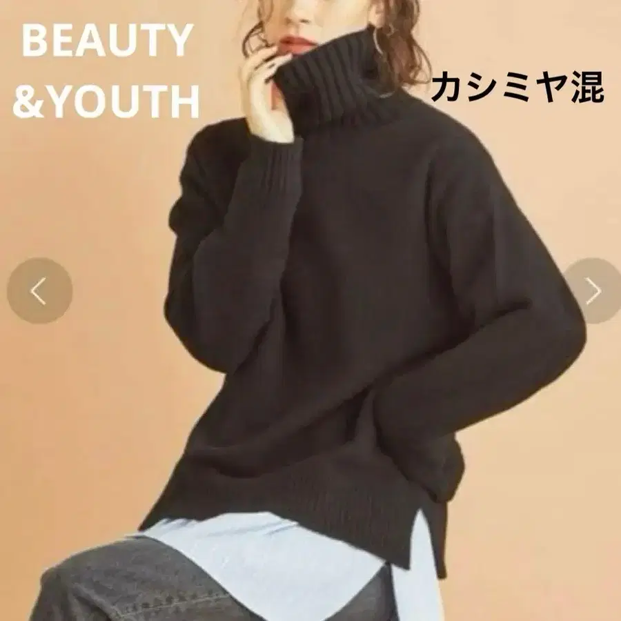 새상품급 BEAUTY&YOUTH 울 캐시미어 루즈 터틀넥 니트 블랙