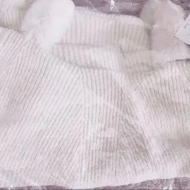EAT ME 인조 모피 스트랩 오프숄더 리브 니트