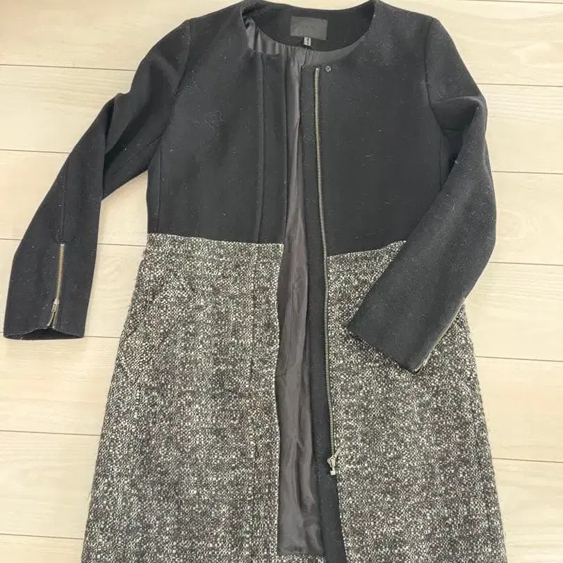 온워드 iCB 울 혼방 노카라 집업 롱 코트