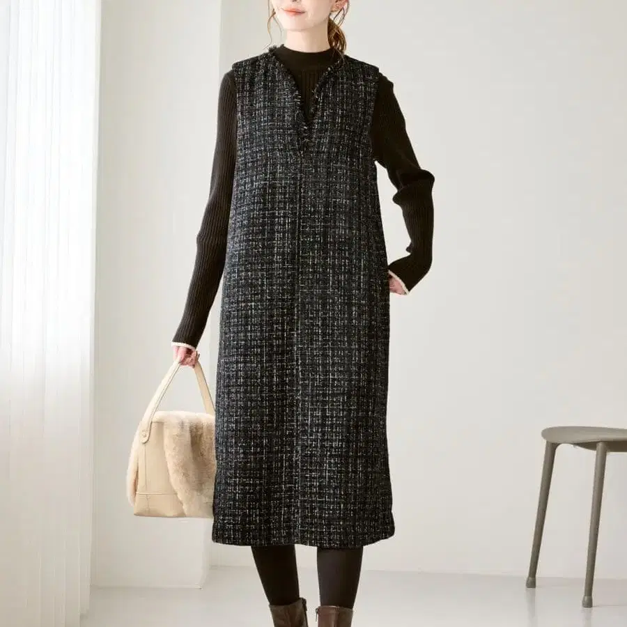 키넥 트위드 오버롤 스커트 원피스