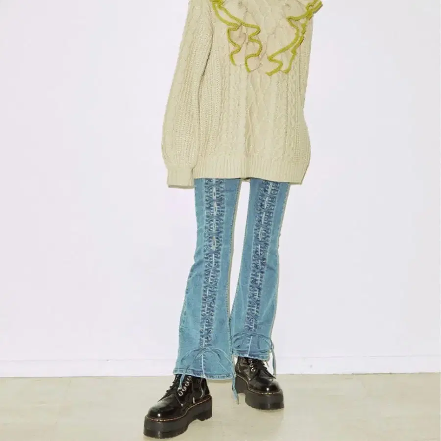 jouetie 센터 레이스업 핏 플레어 팬츠 블루 M 사이즈