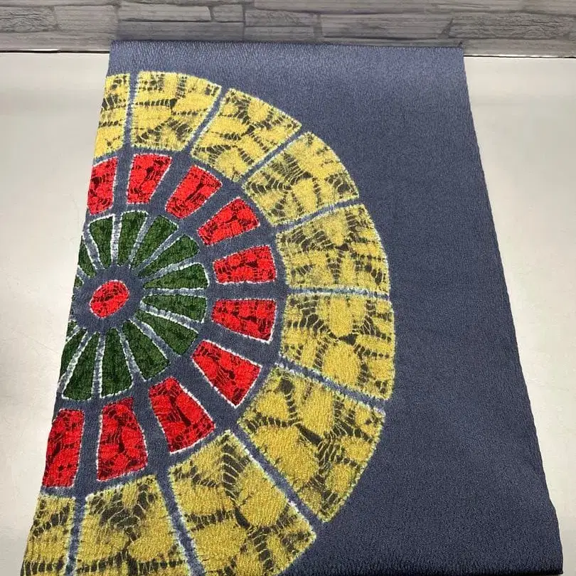 미사용 크레이프 원단 나고야 오비 순수 실크 블루 그레이 바탕
