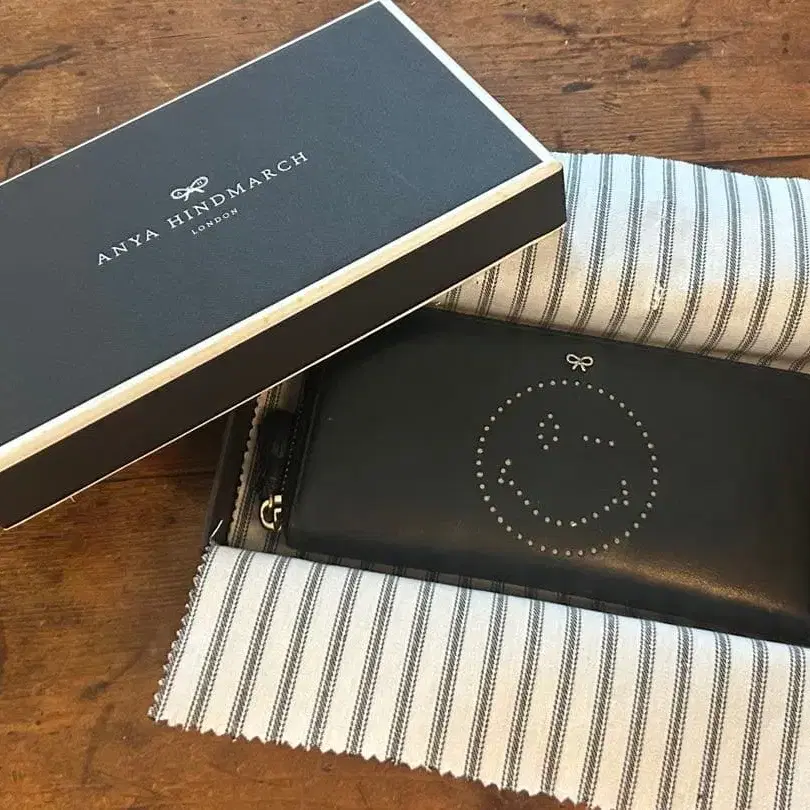 [ Anya Hindmarch ] 스마일리 라운드 지퍼 장지갑 블랙
