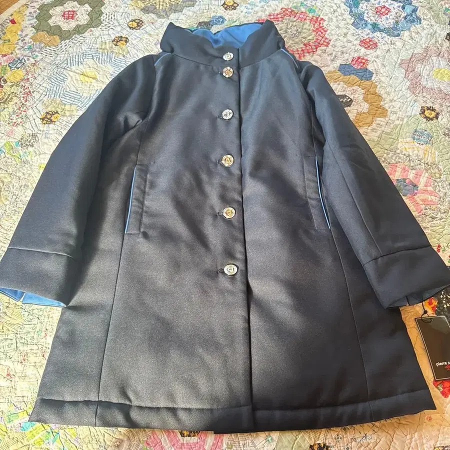 미사용 새상품 택 포함 피에르 가르뎅 스탠드 카라의 모던 배색 솜 코트