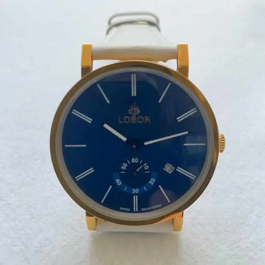 파란색 다이얼 화이트 가죽 벨트 손목시계