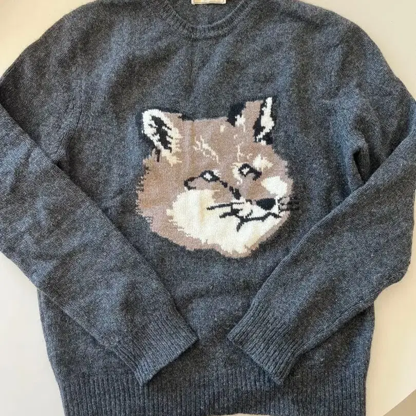 메종 키츠네 폭스 헤드 스웨터 그레이