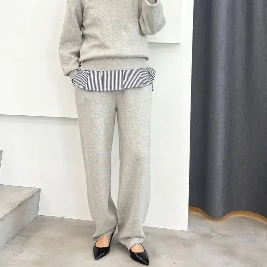 코튼 캐시미어 니트 풀오버 & 테이퍼드 팬츠 셋업