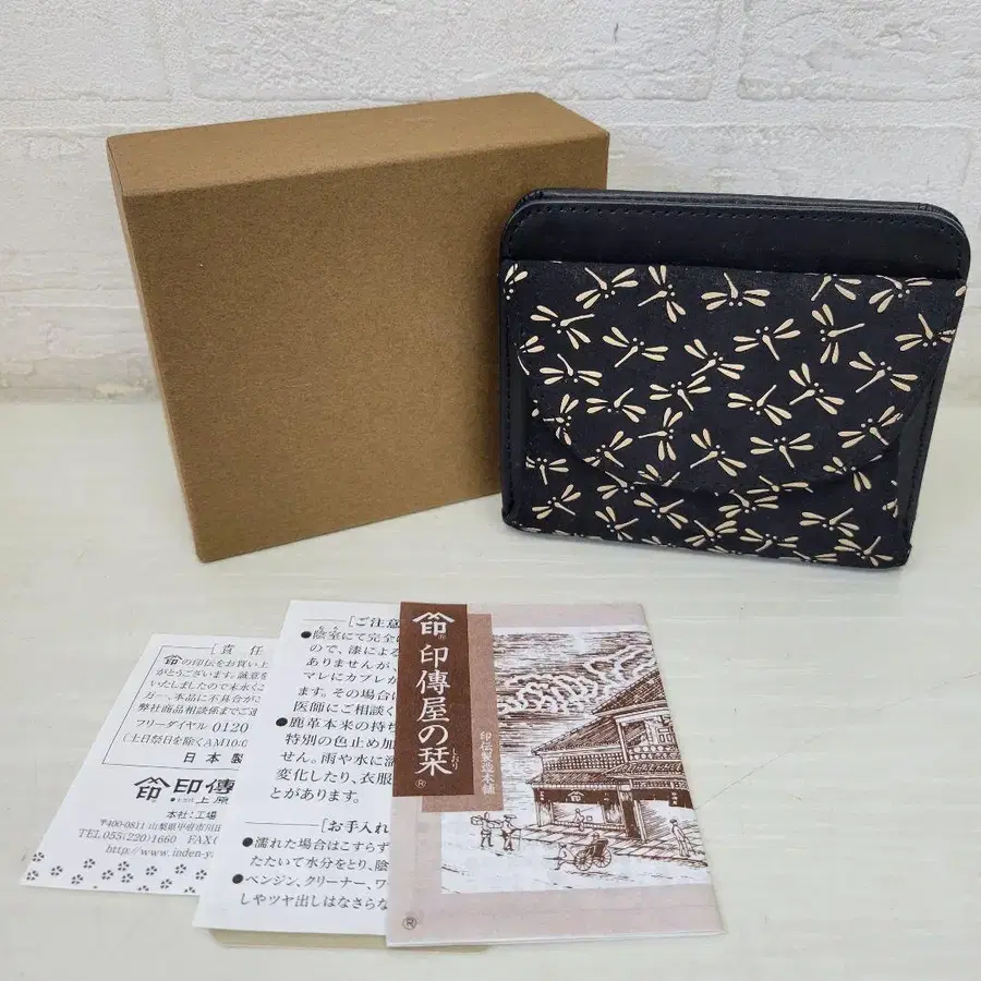 잠자리 패턴 이단 접이식 지갑 합성 피혁 인덴야의 책갈피