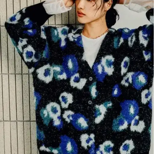 5 게이지 플라워 무늬 V넥 가디건 렙심