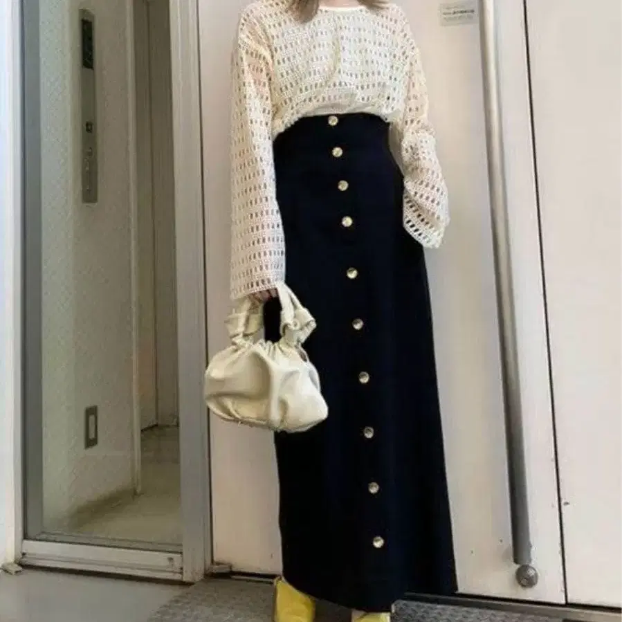 ameri vintage 뉴앙스 버튼 타이트 스커트