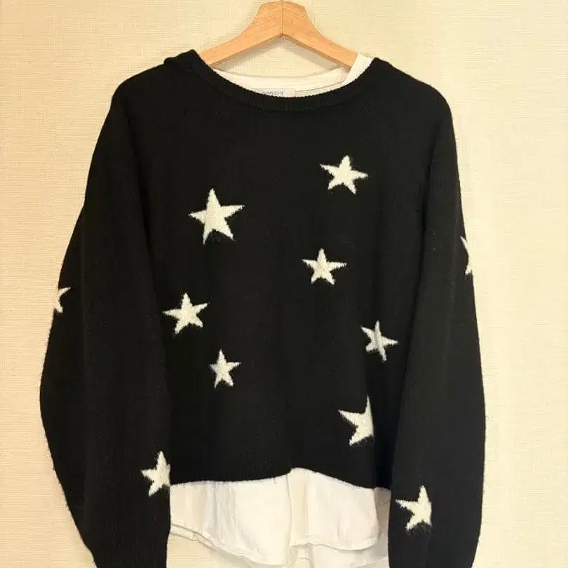 별 패턴 니트 스웨터 x 코튼 100% 화이트 이너 세트