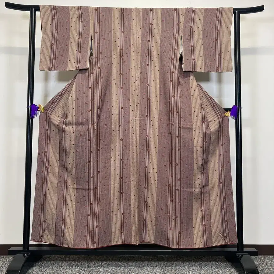 코몬 세로 줄무늬 벚꽃 무늬 꽃보라 기모노 072t
