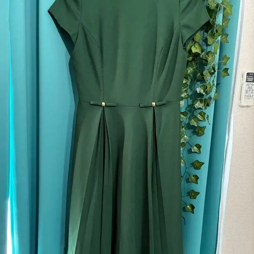 스트로베리 필드 원피스 그린 리본 플리츠 반팔