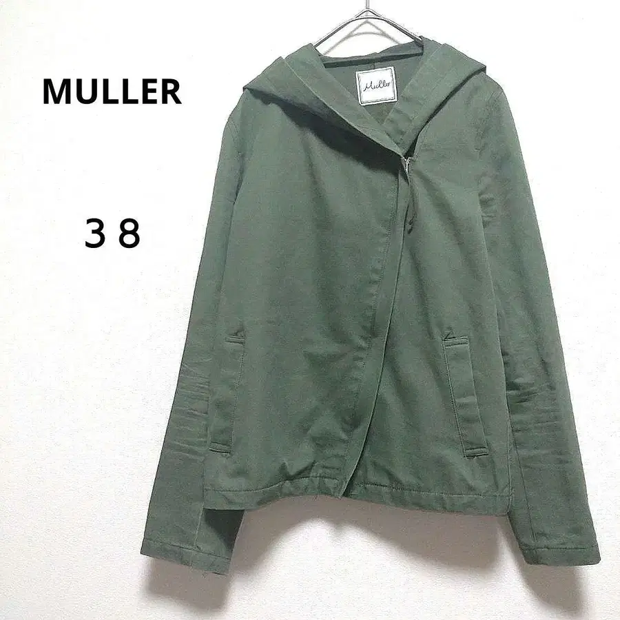 뮐러 38 올리브 그린 후드 부착 집업 자켓 면 100%