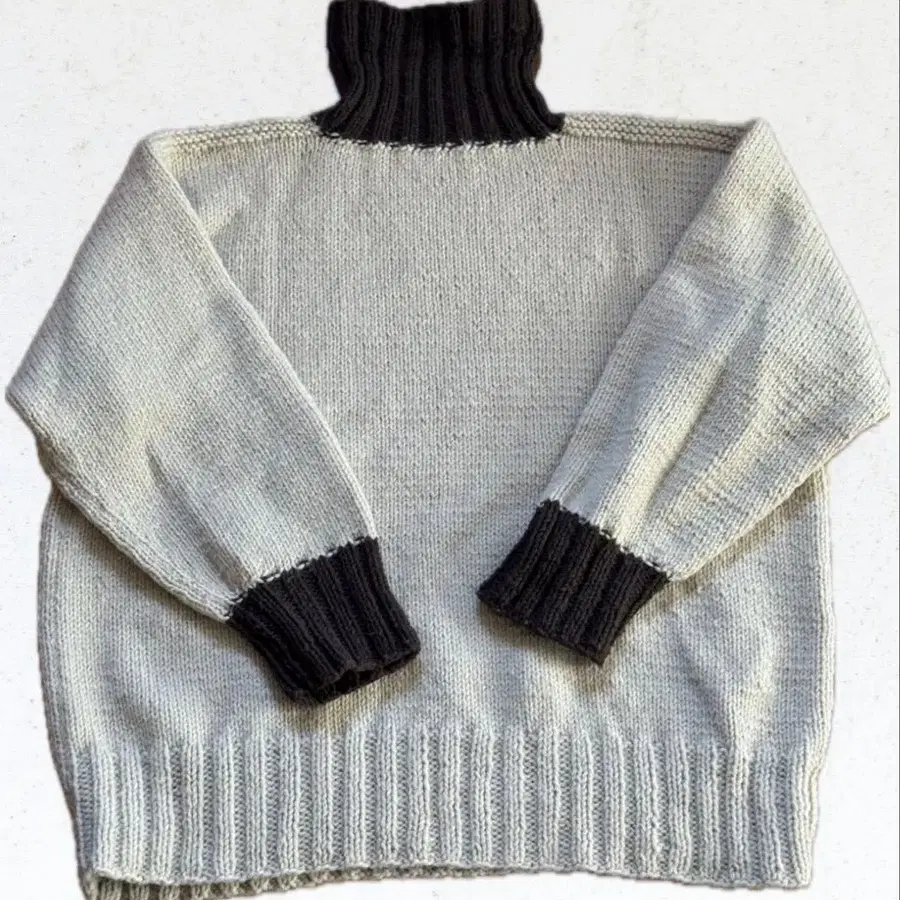 손뜨개질 울 하이넥 터틀넥 스웨터