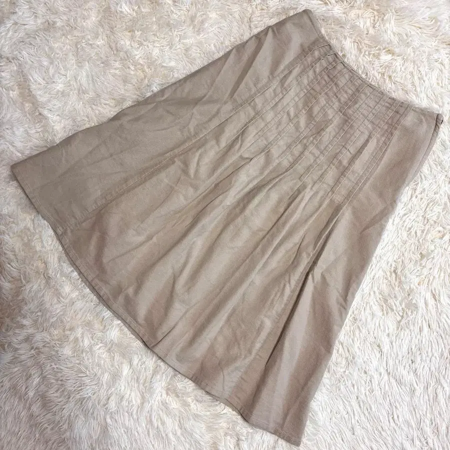 고급 베이지 턱 플레어 스커트 깔끔한 출퇴근 지안니 로 주디체