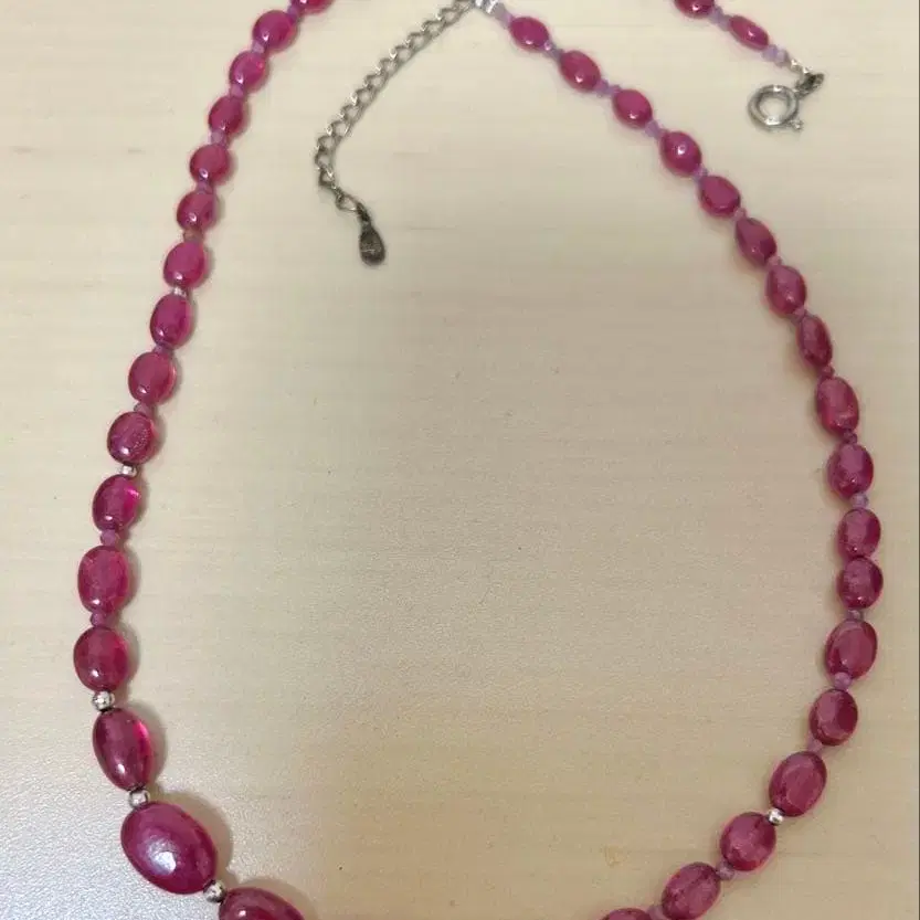 [레어] K10 비즈 천연 루비 목걸이 45cm 대형 투명 빨간색