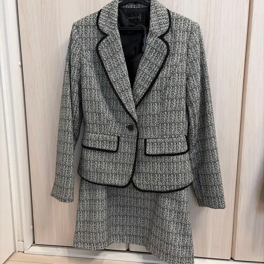 CASTITA 블랙 화이트 트위드 블레이저 셋업
