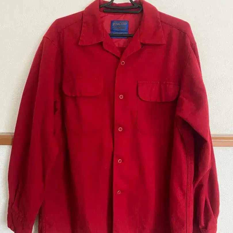 Pendleton 빨간색 오픈 카라 셔츠 100% 울 90s