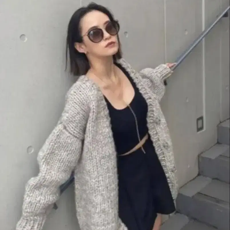 에시오 두꺼운 원단 니트 가디건 긴팔 그레이