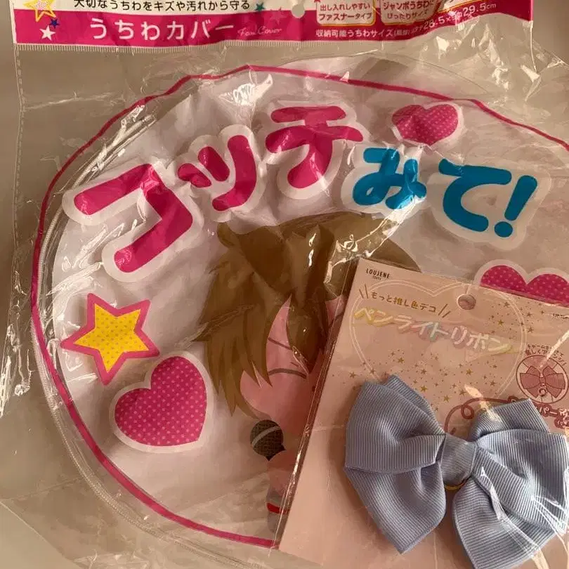 부채 커버 & 응원봉에 다는 스카이블루 리본