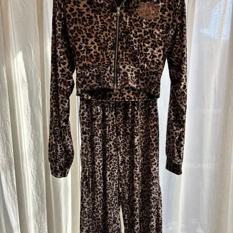 헬로키티 위고 콜라보 레오파드 무늬 후드 부착 저지 셋업