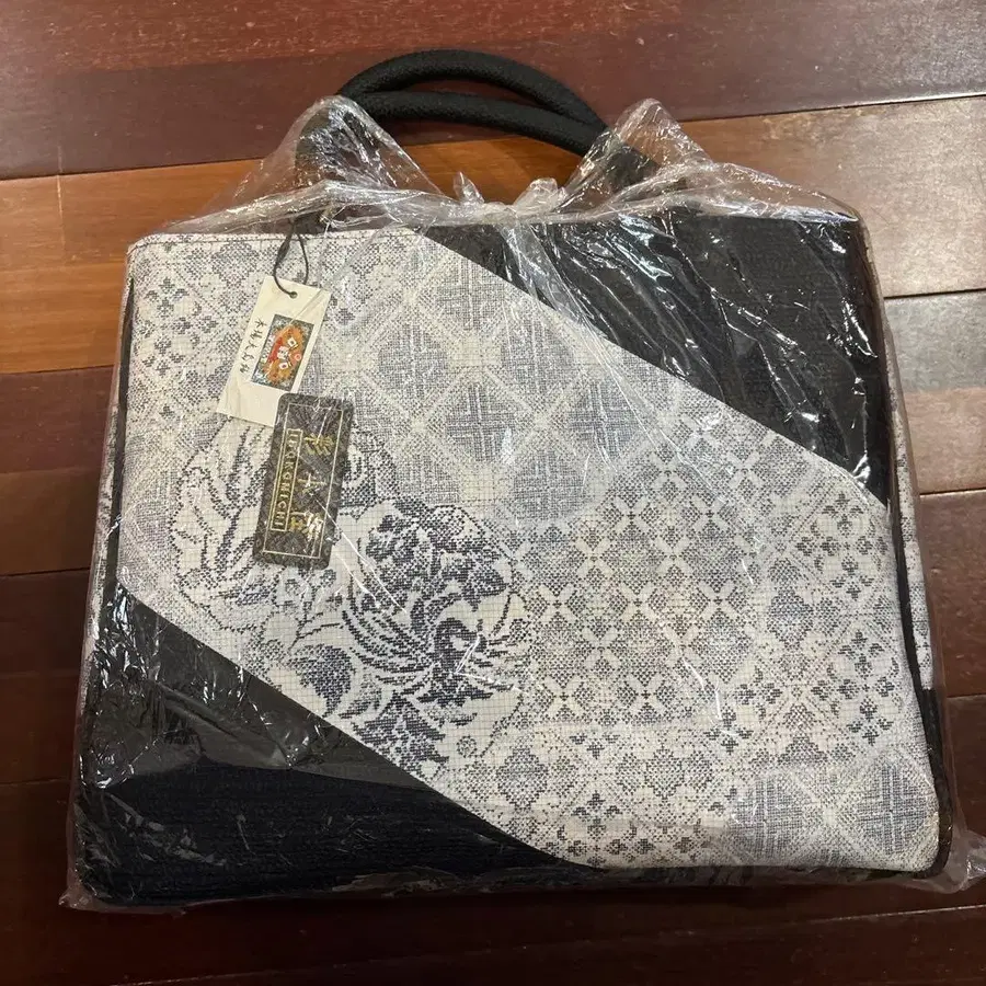 채소경 꽃무늬 일본 의류용 백 블랙/화이트