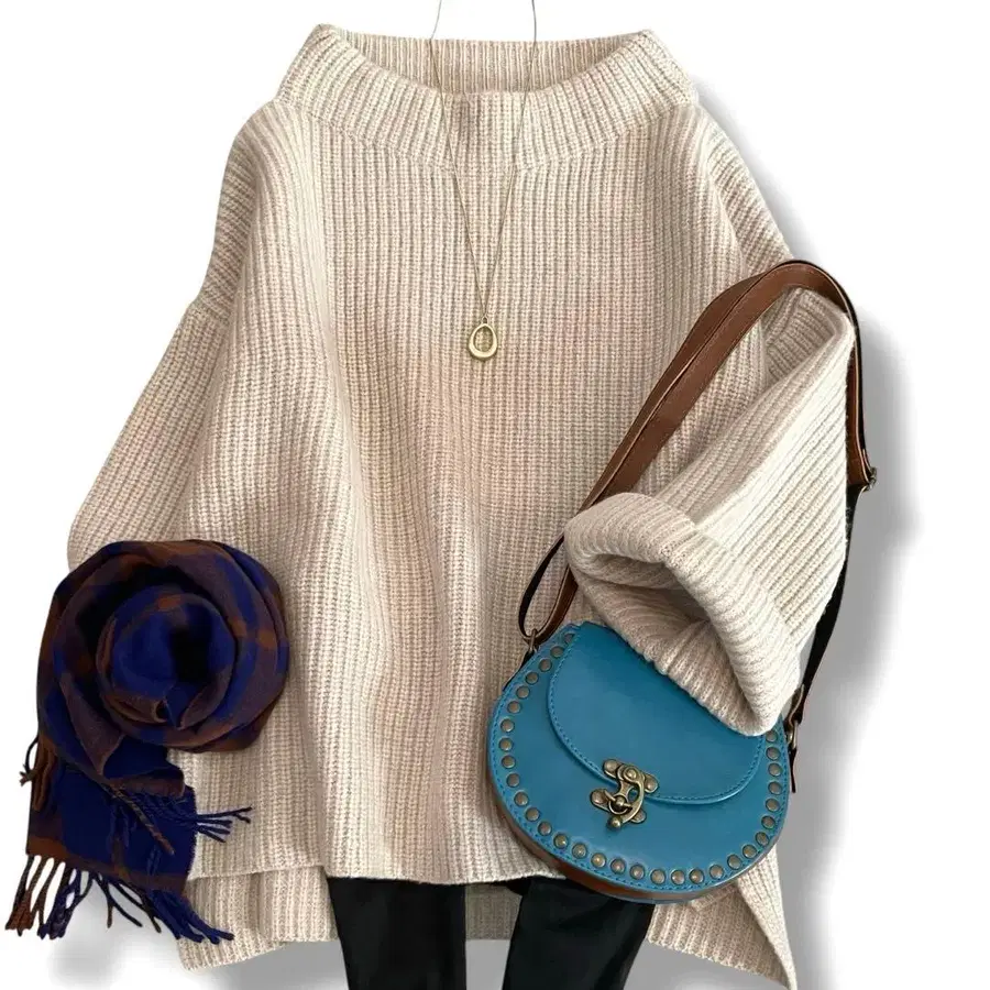 새상품급 에브리데이 아이라이크 니트 리브 울 플레어 소매 루즈핏 F