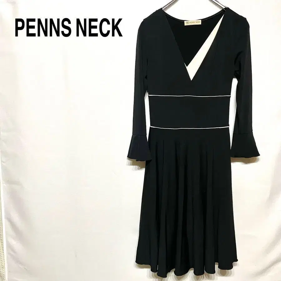 [ 상품 설명 ] PENNS NECK 긴팔 롱 기장 원피스 v넥 손목 프릴 블랙 사이드 지퍼 작동 양호 ◎