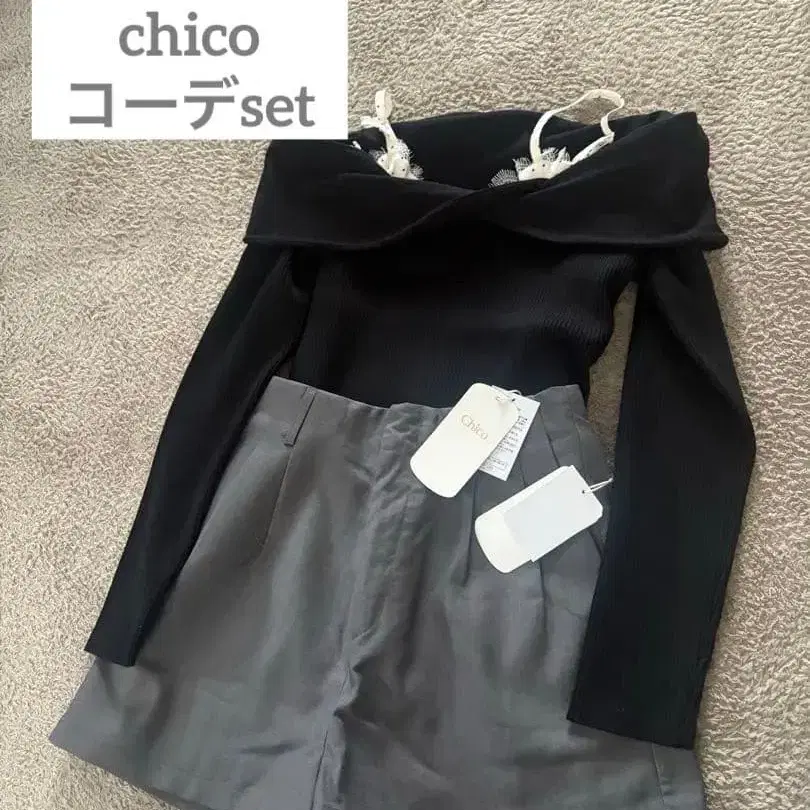 미사용 새상품! chico 코디 set 니트 & 하프팬츠 데이트 코디