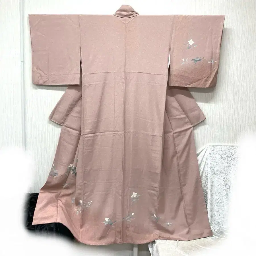 호몬기 핑크 꽃무늬 스코치 가드 기모노 일본 의류 순수 실크 쇼와 레트로