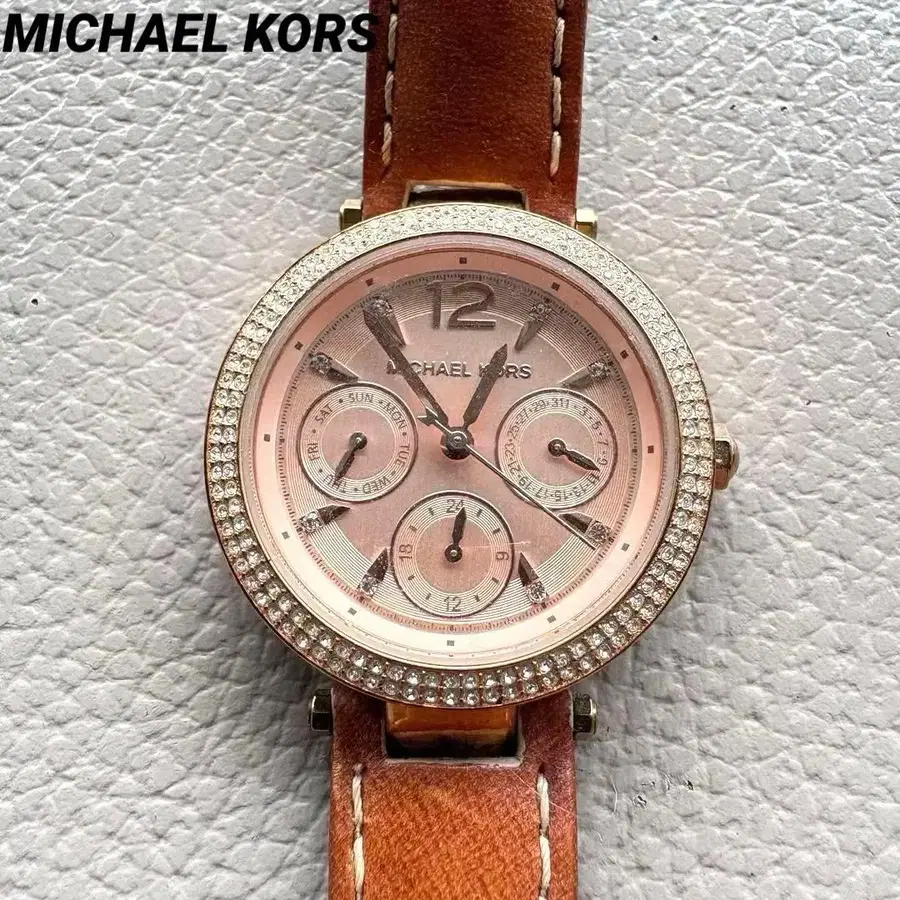 마이클코어스 스톤 장식 골드 핑크 쿼츠 손목시계 베젤