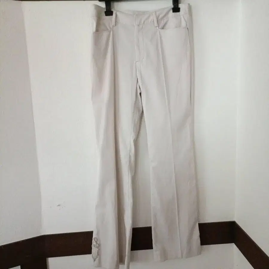 미사용 새상품 팬츠 슬랙스 아틀리에 마리코 아이보리 꽃무늬 자수 M