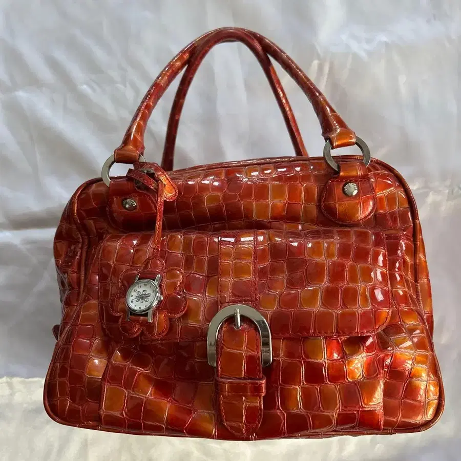 코코 피오레 보스턴형 백 악어 엠보싱 레드 계열 핸드백