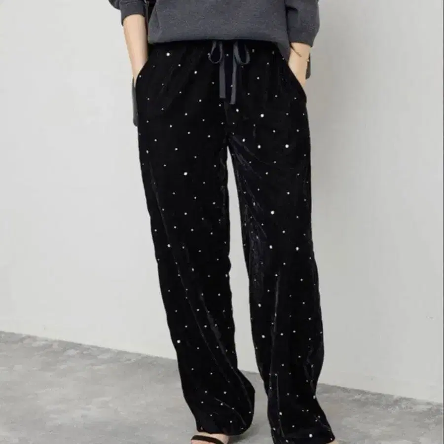 COUTURE D'ADAM 글리터 벨벳 이지 팬츠 38 블랙
