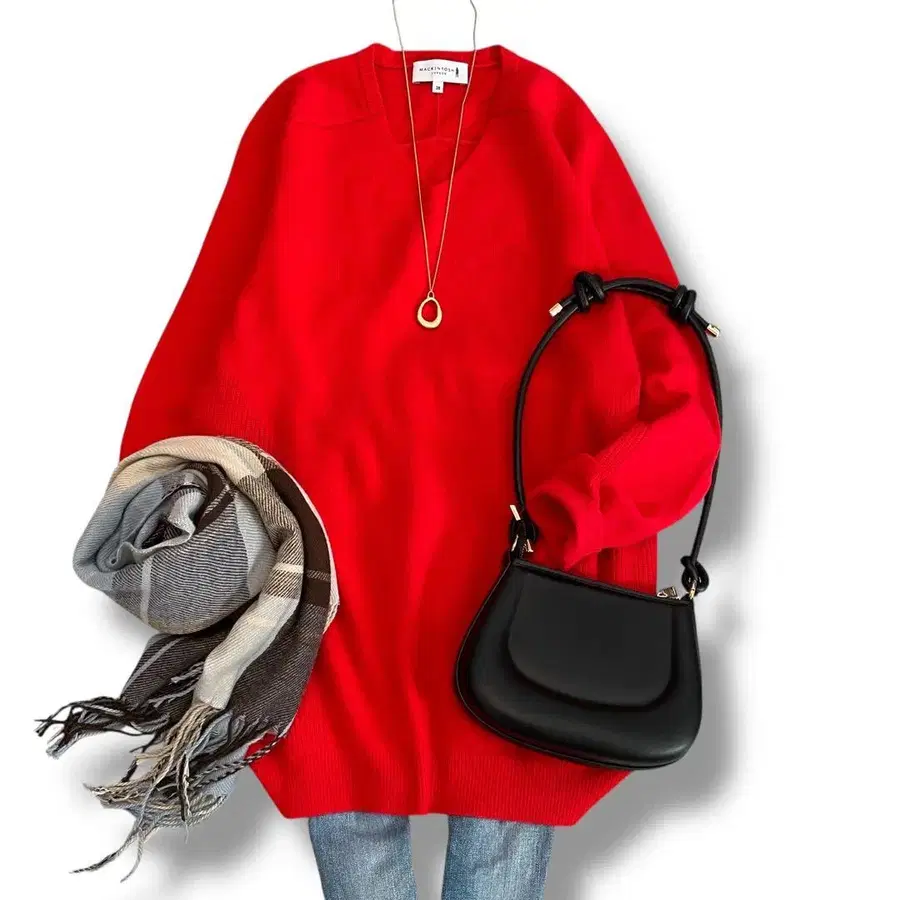 새상품급 매킨토시 철학 하이 게이지 캐시미어 니트 빨간색 루즈핏