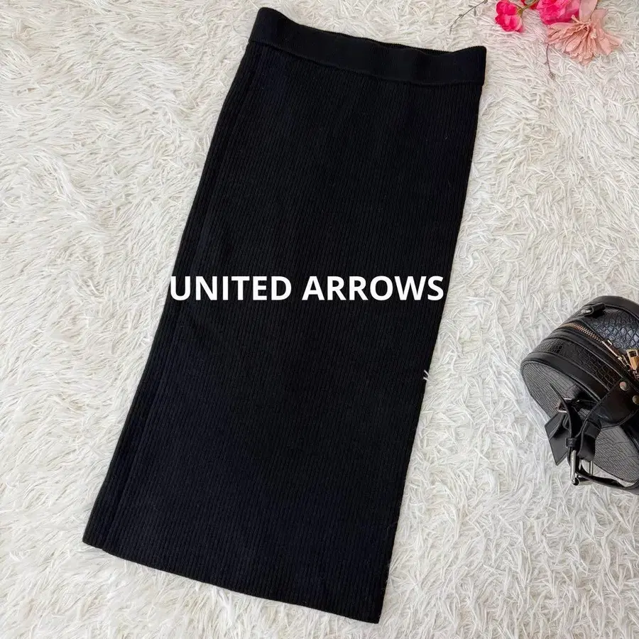 유나이티드 애로우즈 울 혼방 리브 니트 스커트 블랙 롱 기장 타이트 F
