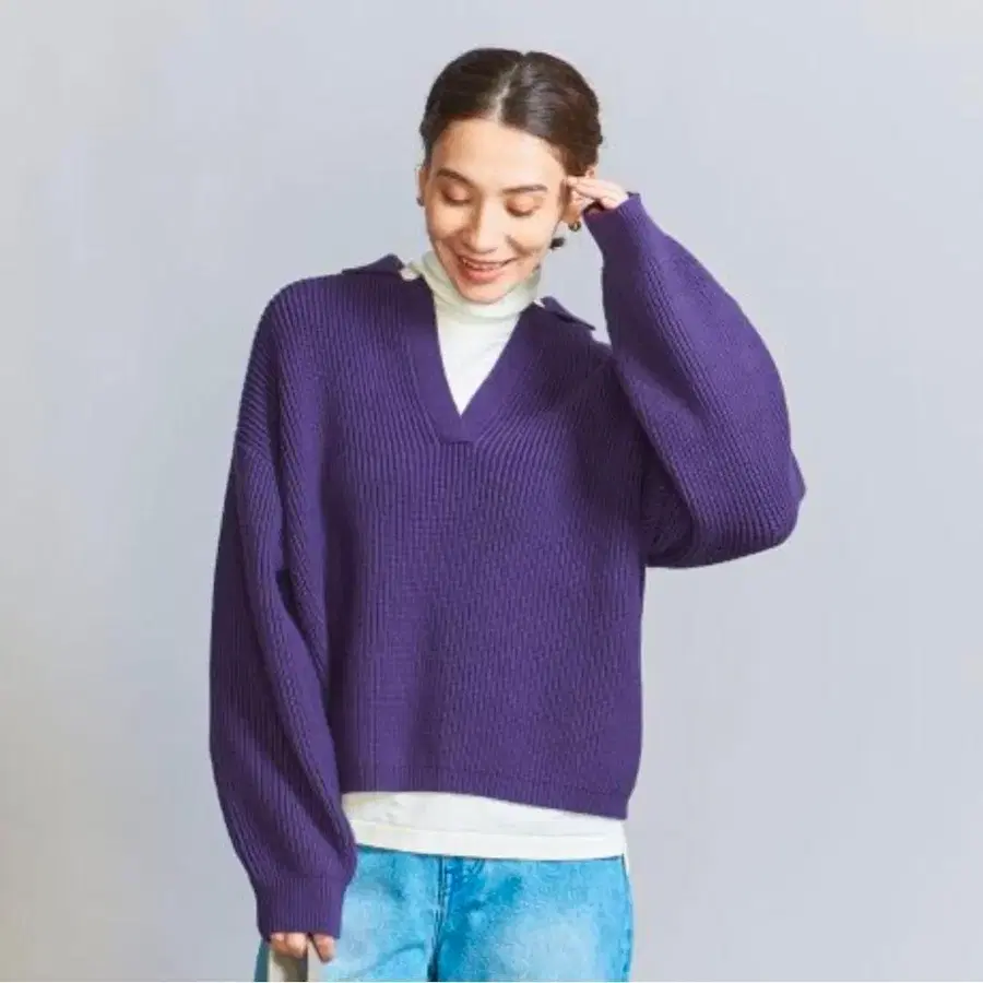 스키퍼 숏 니트 풀오버 -워셔블- 퍼플