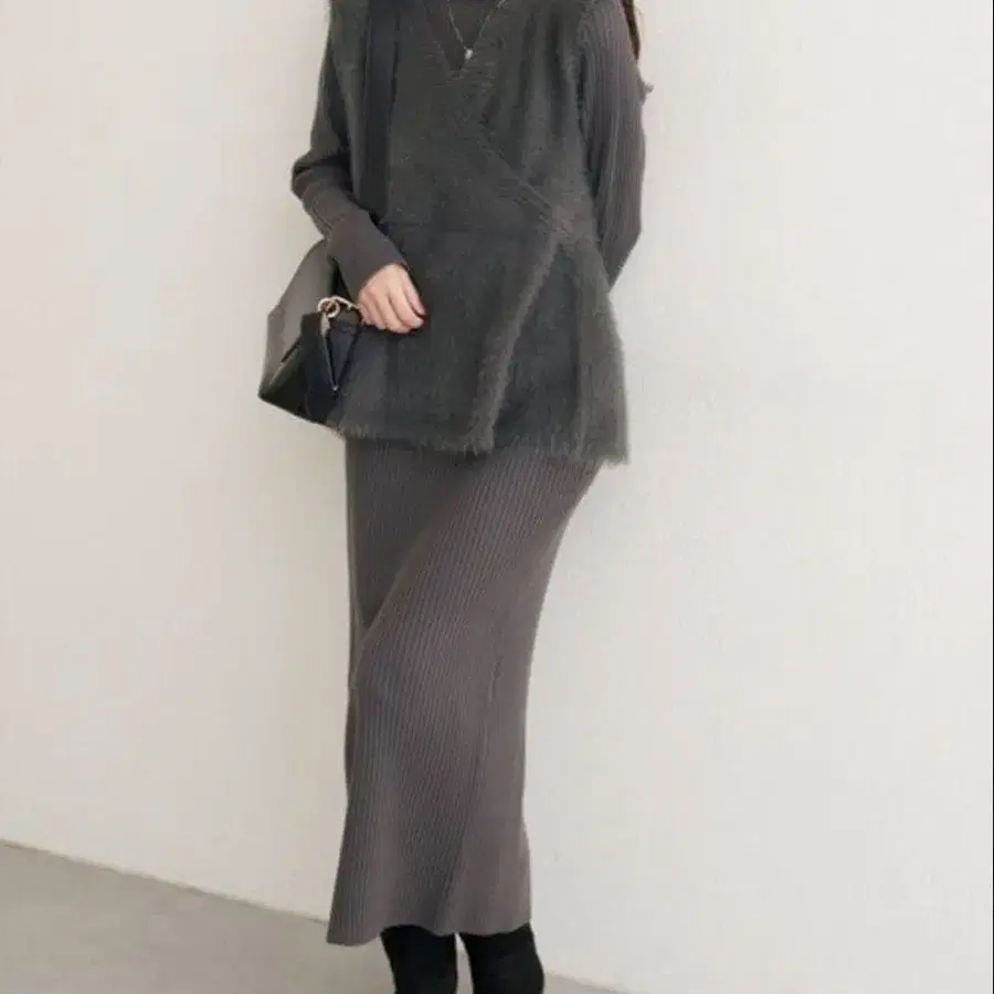 바디라인에 부드럽게 맞는 타이트 원피스는 세로 리브가 스타일을 더욱 아름답게 보여줍니다.