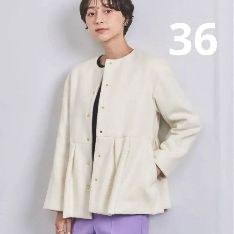 2가지 사이즈로 출시되었으며, 평소 M 사이즈나 프리 사이즈를 구매하는 편이지만, 이 상품은 안에 조금 껴입어도 36 사이즈가 부해 보이지 않고 딱 좋았습니다. 안감이 있어 소매를 넣기도 쉽습니다.