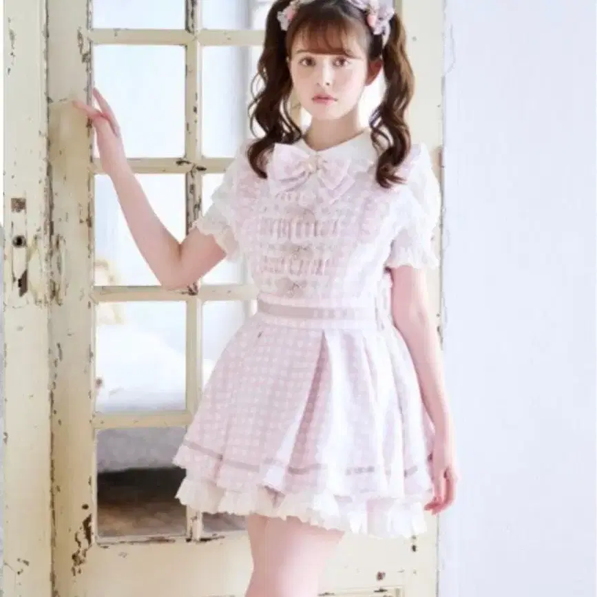 LIZLISA 리즈리사 깅엄 체크 트위드 셋업 핑크