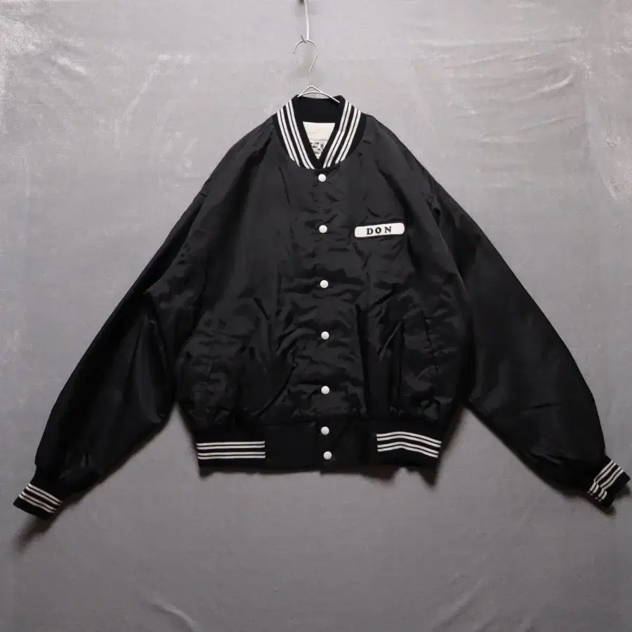 블랙 색상의 바시티 자켓, 스트라이프 옷깃 디자인, WEST WIND 제조, XL 사이즈.