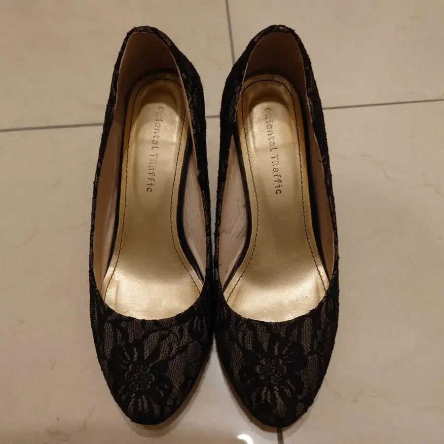 [ 연말까지 판매 ] 블랙 레이스 라운드토 힐 꽃무늬