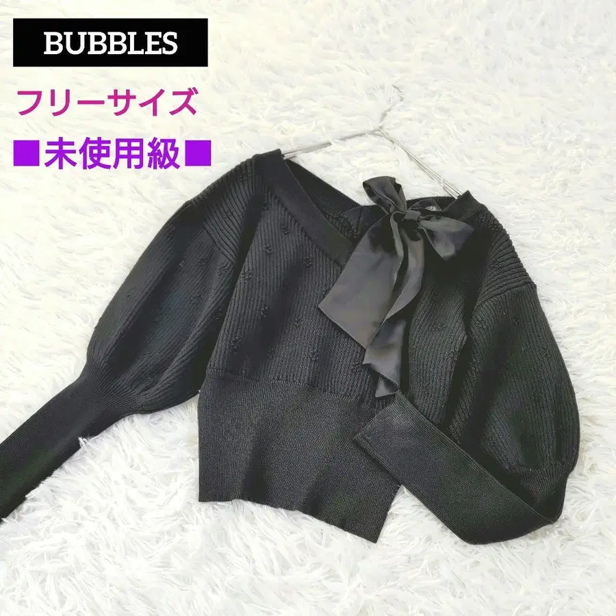 고품질! [버블스] 블랙 니트 리본 볼륨 슬리브 블랙 프리