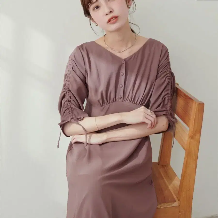 상품명 - [ 푸치나츄 ] 소매 드로스트 V넥 원피스