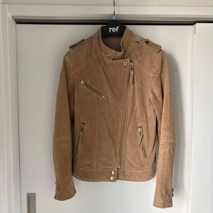 MANGO 베이지 스웨이드풍 라이더 자켓