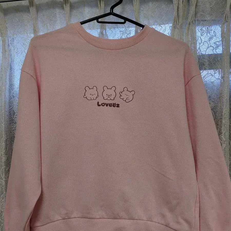 LOVEZZ 곰 자수 핑크 맨투맨